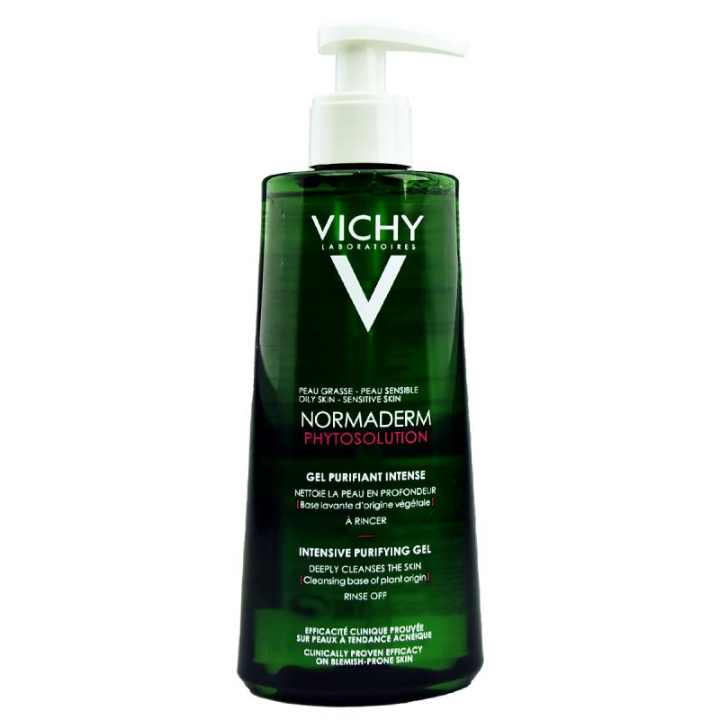 VICHY Normaderm Phytosolution Intense Purifying Gel është një xhel larës për lëkurat e yndyrshme dhe me tendencë akneike, i pasuruar me minerale dhe probiotikë, i cili në mënyrë të përsosur largon papastërtitë dhe sebumin e tepërt. Ky xhel është formuluar nga 3 përbërës aktivë të fuqishëm kundër njollave me bazë bimore pastruese.